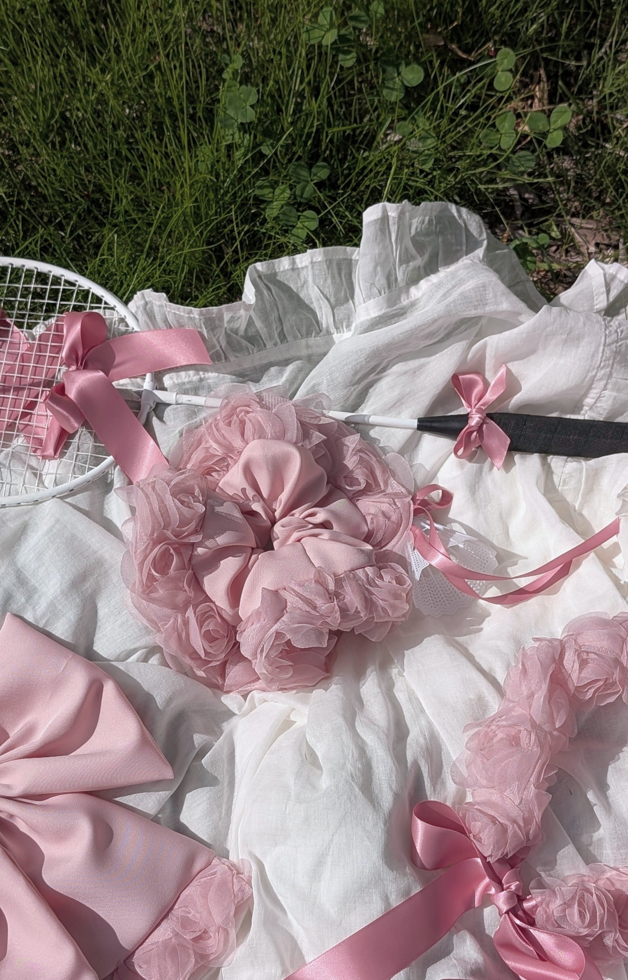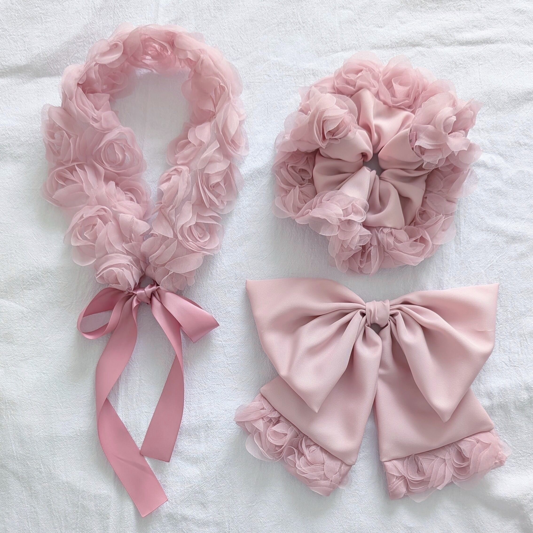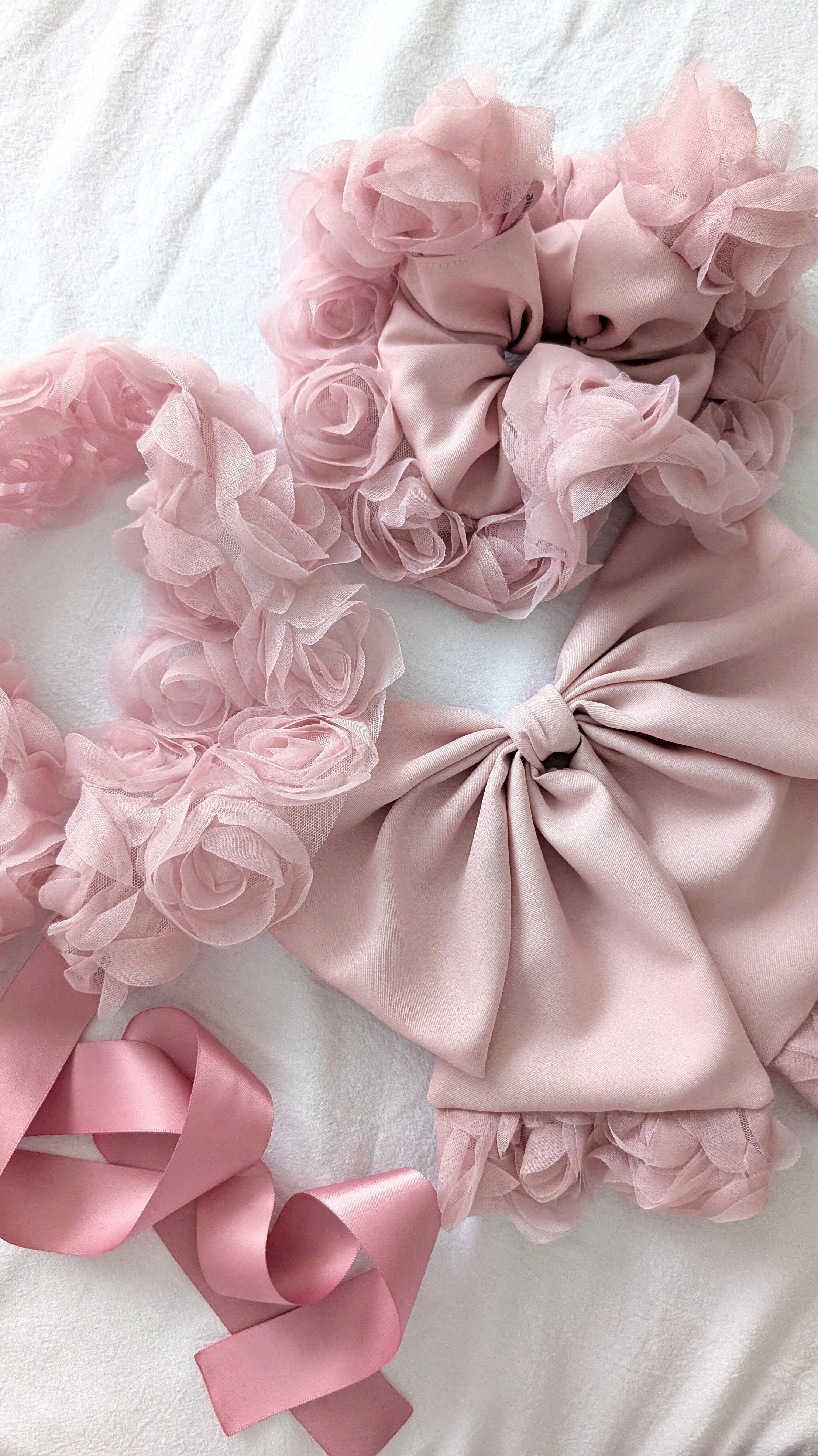 ブライダルにも使用される厳選した生地とローズチュールをたっぷりと贅沢に使用したビッグシュシュ