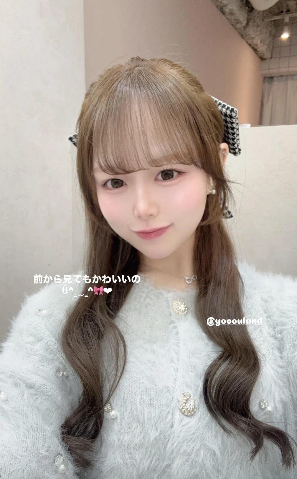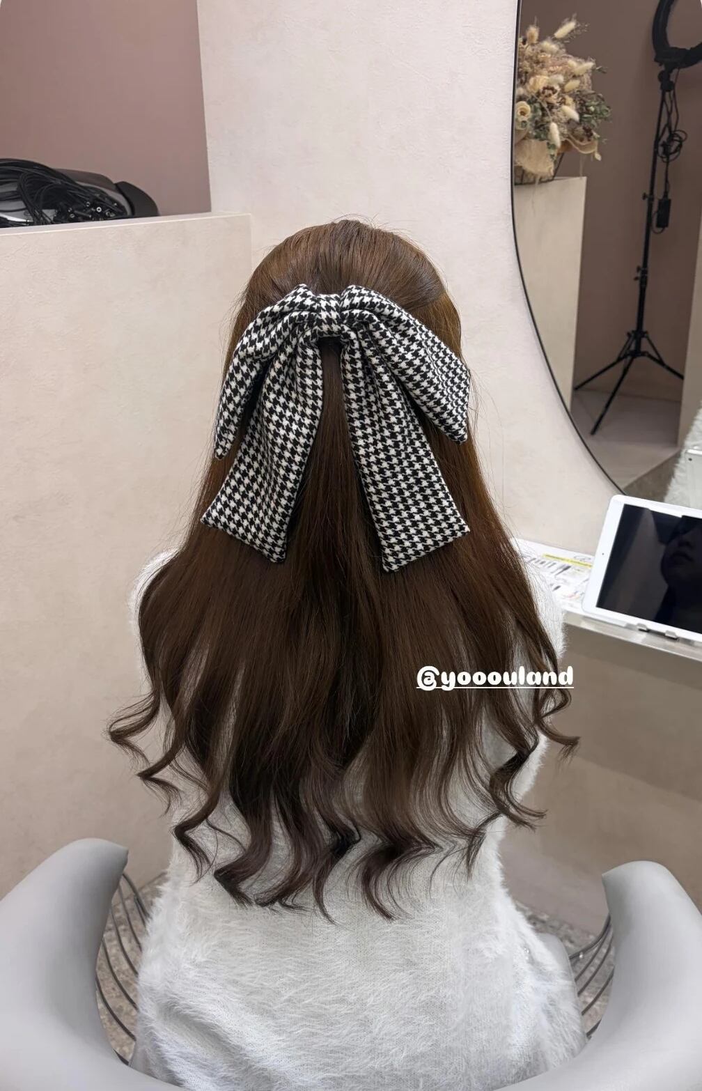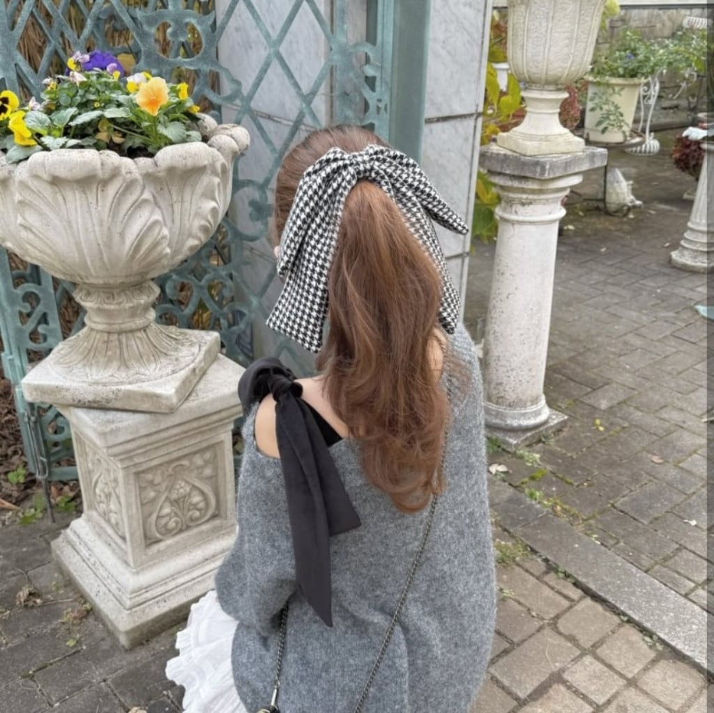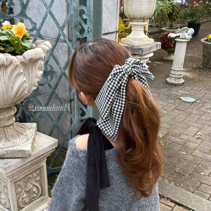 モノトーンの千鳥格子柄で秋冬らしいシックでモダンな雰囲気の中にby meらしいガーリーさを加えたリボンアイテムです。