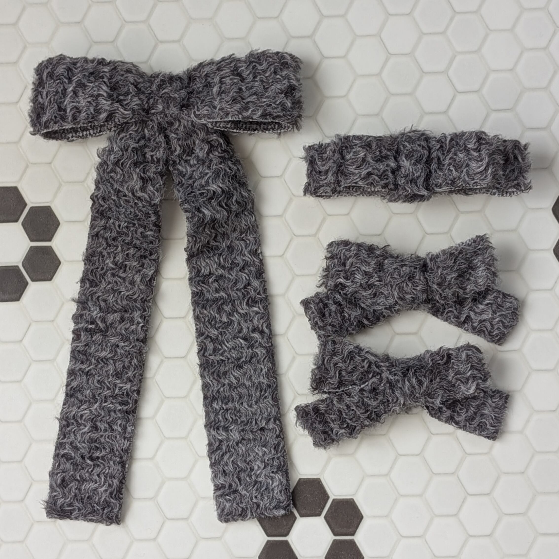 シュナウザーのような可愛いファーリボンが柔らかな印象を与えるワンポイントに。