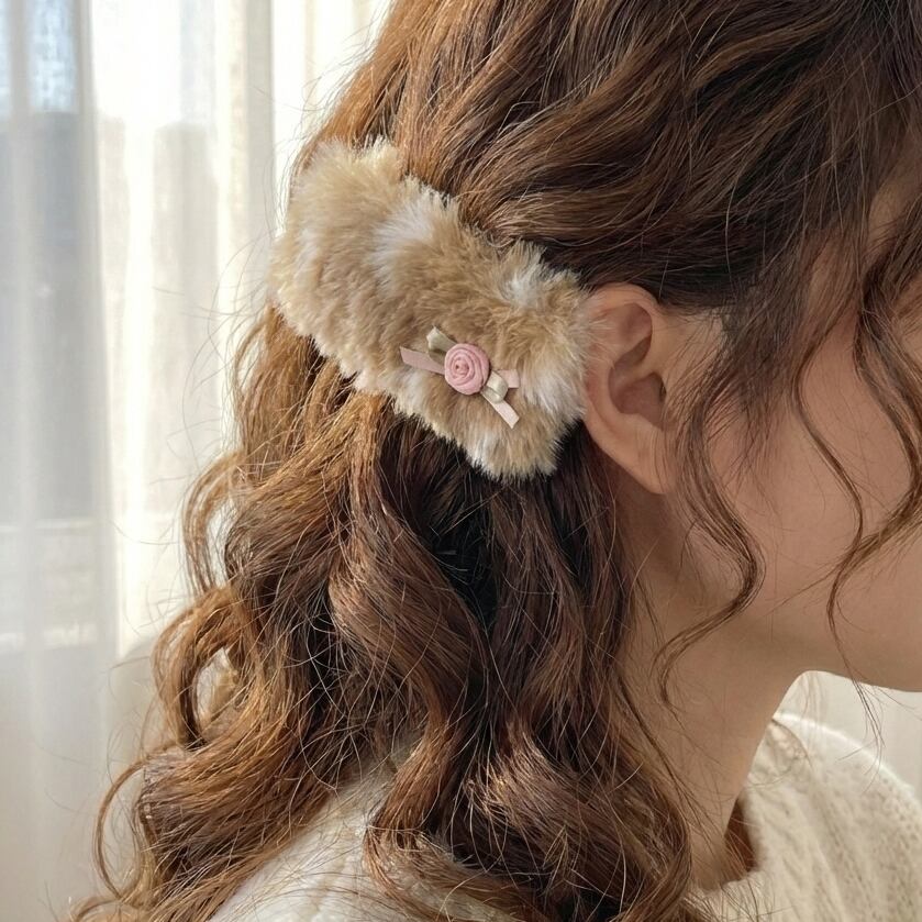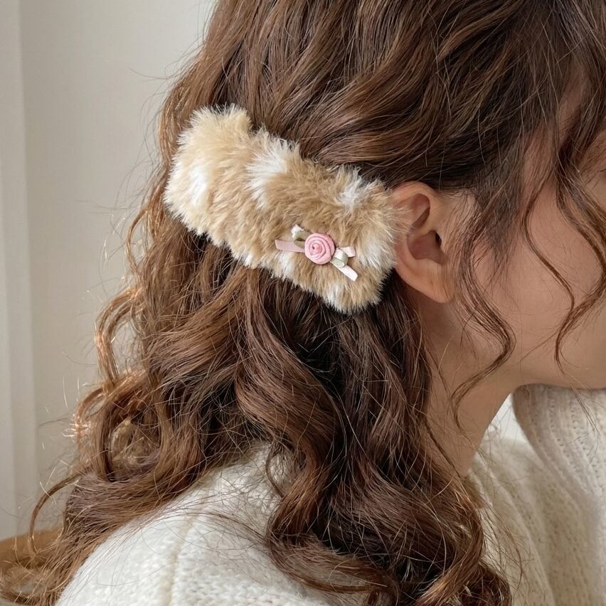 バンビ柄のふわふわなヘアクリップ