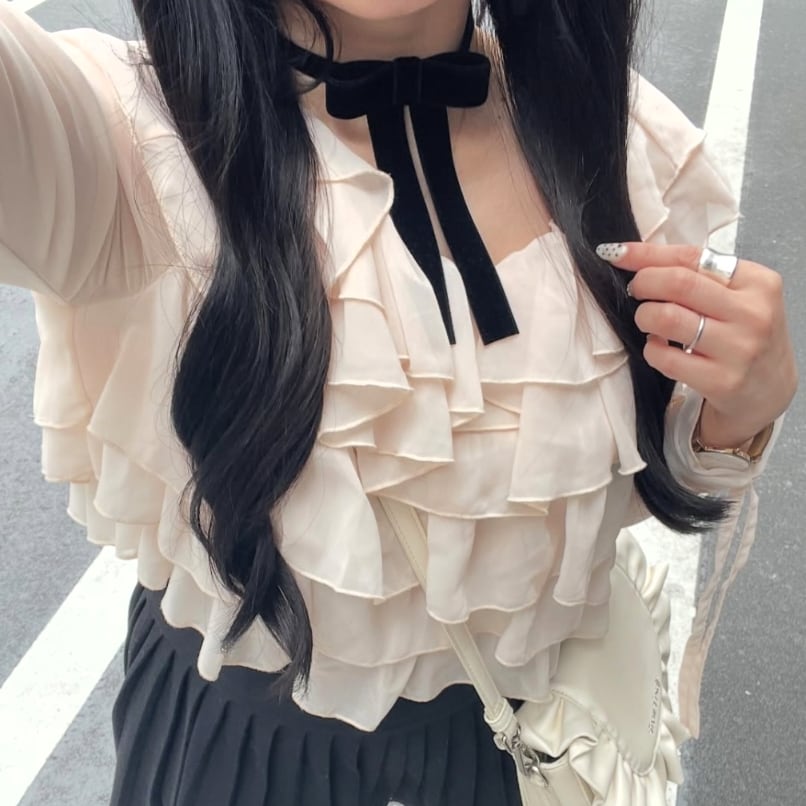 シンプルなコーディネートに大きなリボンがワンポイントに