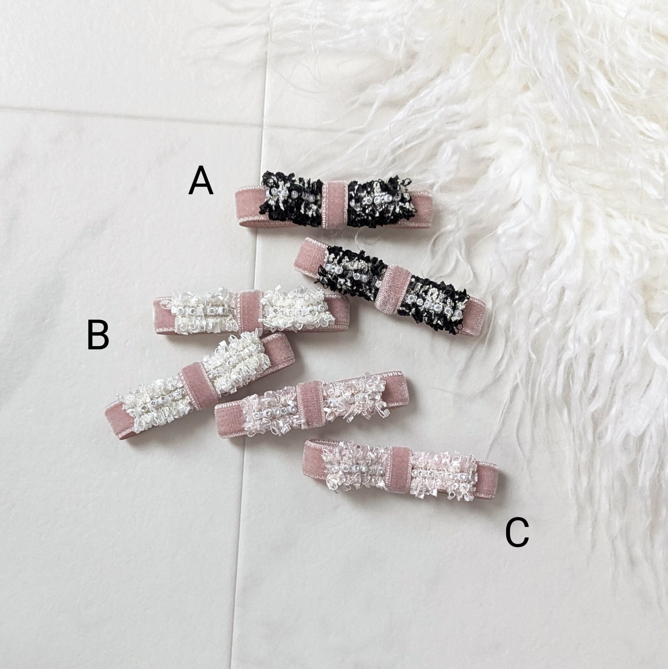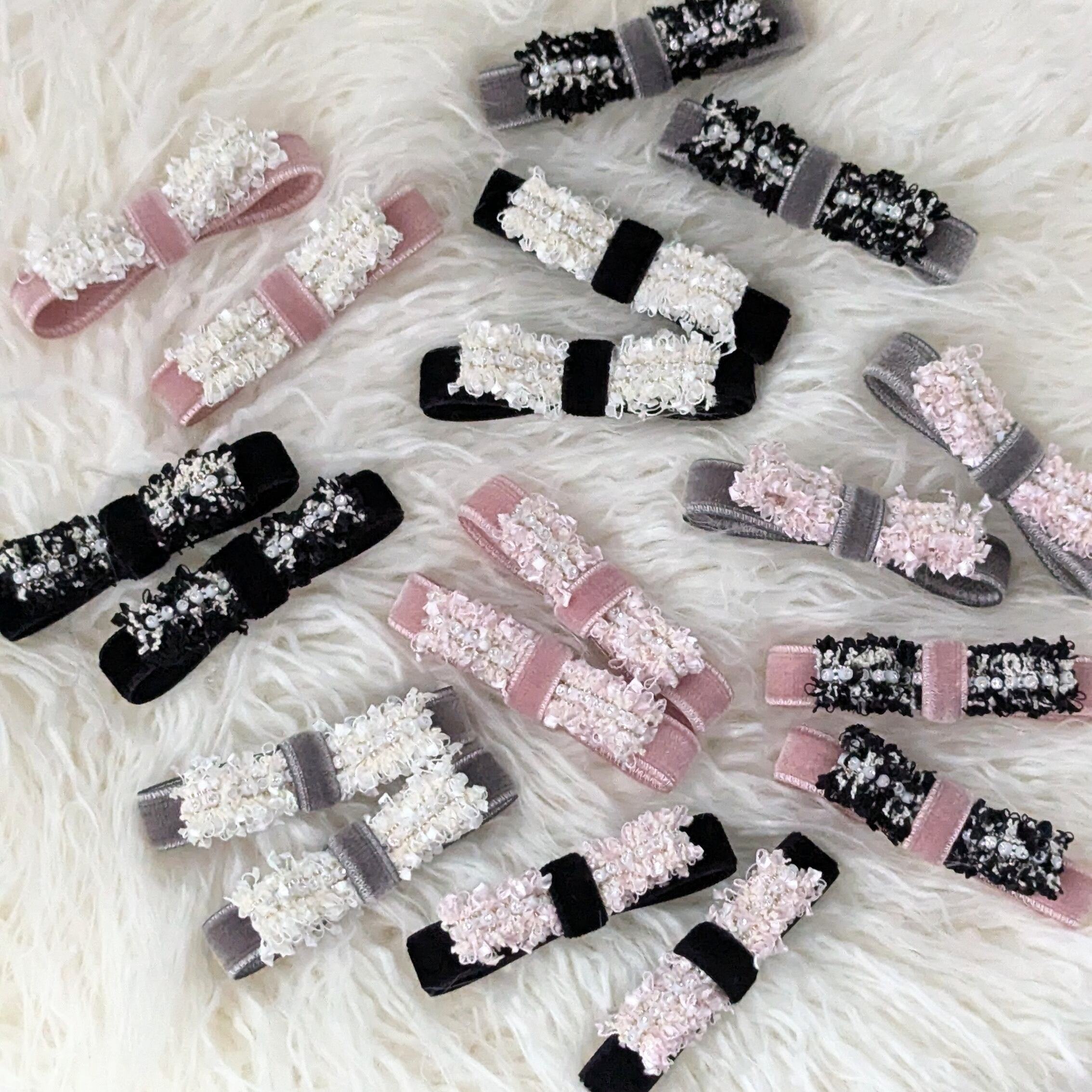 秋から春のコーディネートまで使いやすいツイード×ベルベットのコンビネーションヘアクリップ!